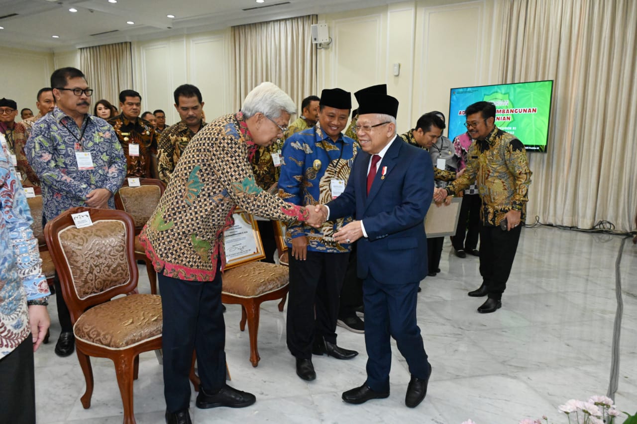Penghargaan dari Pesiden Jokowi tersebut diserahkan oleh Wakil Presiden Republik Indonesia, K.H Ma’ruf Amin didampingi Menteri Pertanian H Syahrul Yasin Limpo kepada Gubernur H Herman Deru yang diwakili oleh Wakil Gubernur (Wagub) Sumsel H Mawardi Yahya, bertempat di Istana Wakil Presiden, Senin (14/8).
