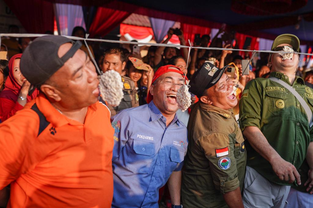 Pj Bupati H Apriyadi Mahmud dalam hal ini didampingi Kabid Penegak Peraturan Daerah, Indita Purnama, satpol PP, Kabag Prokopim Agung Perdana, kabid komunikasi publik kominfo, Kartiko Buwono, beberapa staf kecamatan dan kepala desa secara langsung membagikan hadiah kepada para pemenang lomba diantaranya lomba panjat pinang, lomba makan krupuk, lomba kelereng sendok, lomba pecah balon, joged balon, tendang bola pake terong, lomba gaple. (ril)