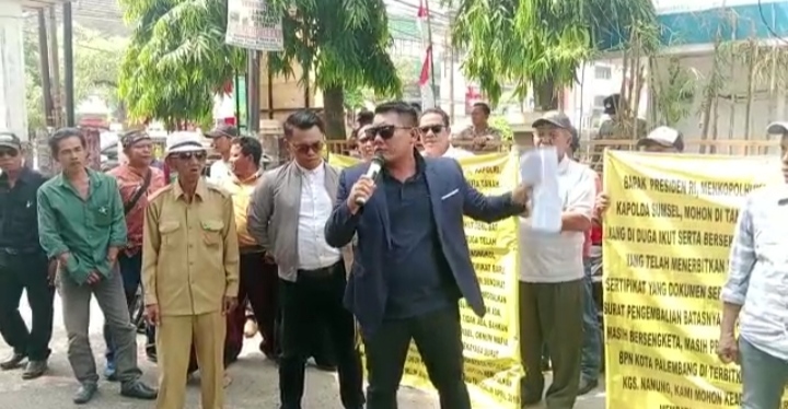 Kedatangan puluhan ahli waris tersebut terkait adanya dugaan penyerobotan tanah oleh mafia seluas 23000 m2 yang berlokasi di KM 8 jalan Kolonel H Berlian Kota Palembang.