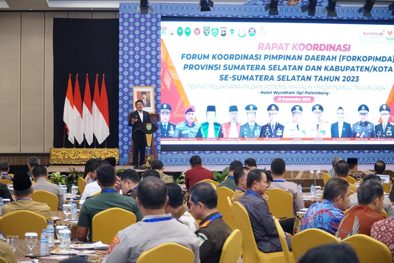 “Langkah ini penting dilakukan untuk menyamakan frekuensi sehingga pemilu 2024 ini dapat berjalan dengan baik,” kata Herman Deru ketika membuka Rapat Koordinasi bersama Forkopimda Provinsi Sumsel dan Forkopimda Kabupaten/Kota se Sumsel di Ballroom Hotel Wyndham, Kamis (21/9).
