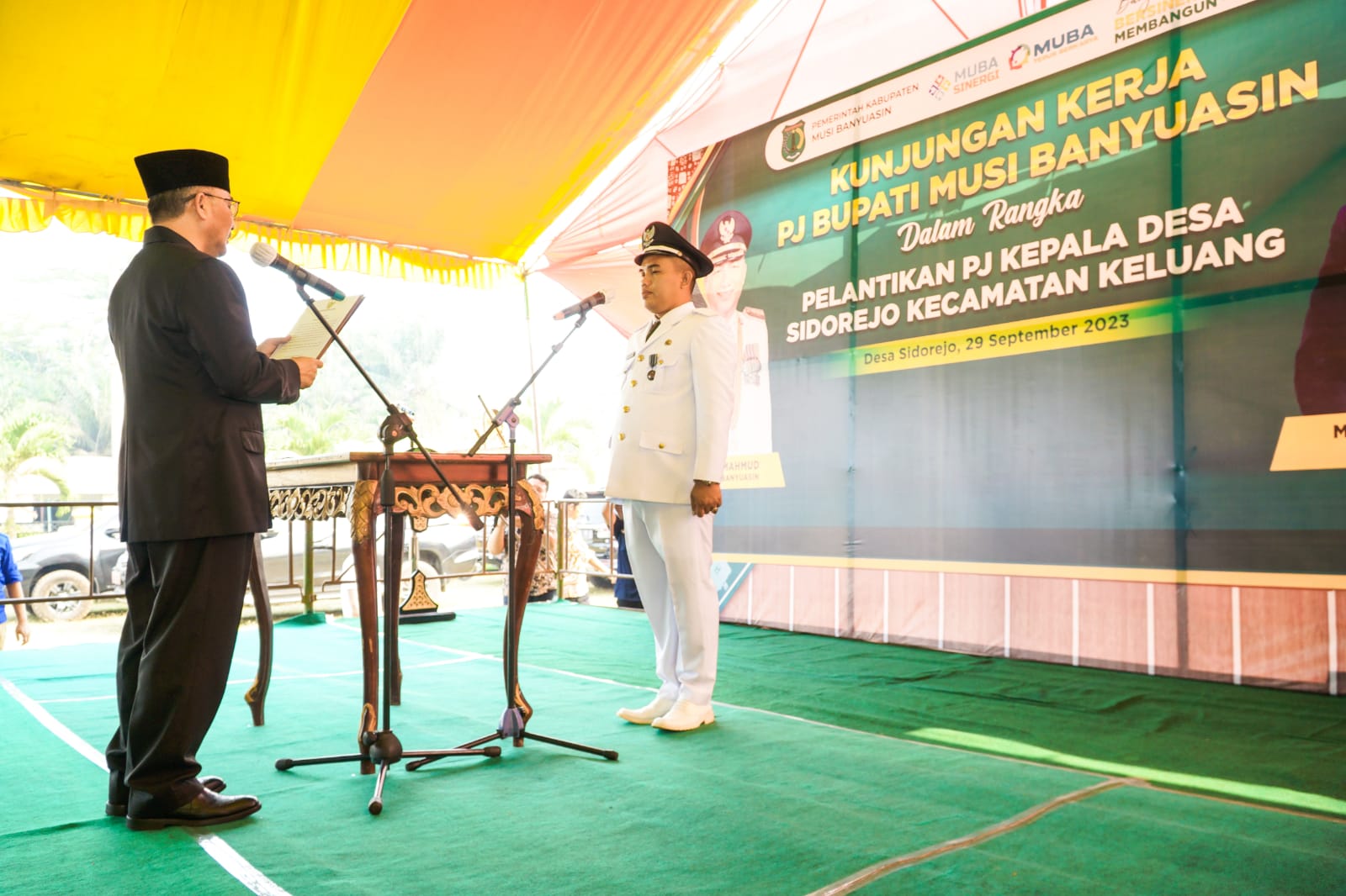 KATANDA.ID, Muba – Berlangsung di kantor Kepala Desa Sidorejo, Jum’at (29/09/2023) Pj Bupati Muba H Apriyadi Mahmud secara resmi melantik dan mengambil sumpah Didi Afrika SPd MSi, sebagai Penjabat Kepala Desa Sidorejo Kecamatan Keluang tahun 2023 mengantikan Kepala Desa Sido Rejo Pujiono SH MH periode 2021- 2027.