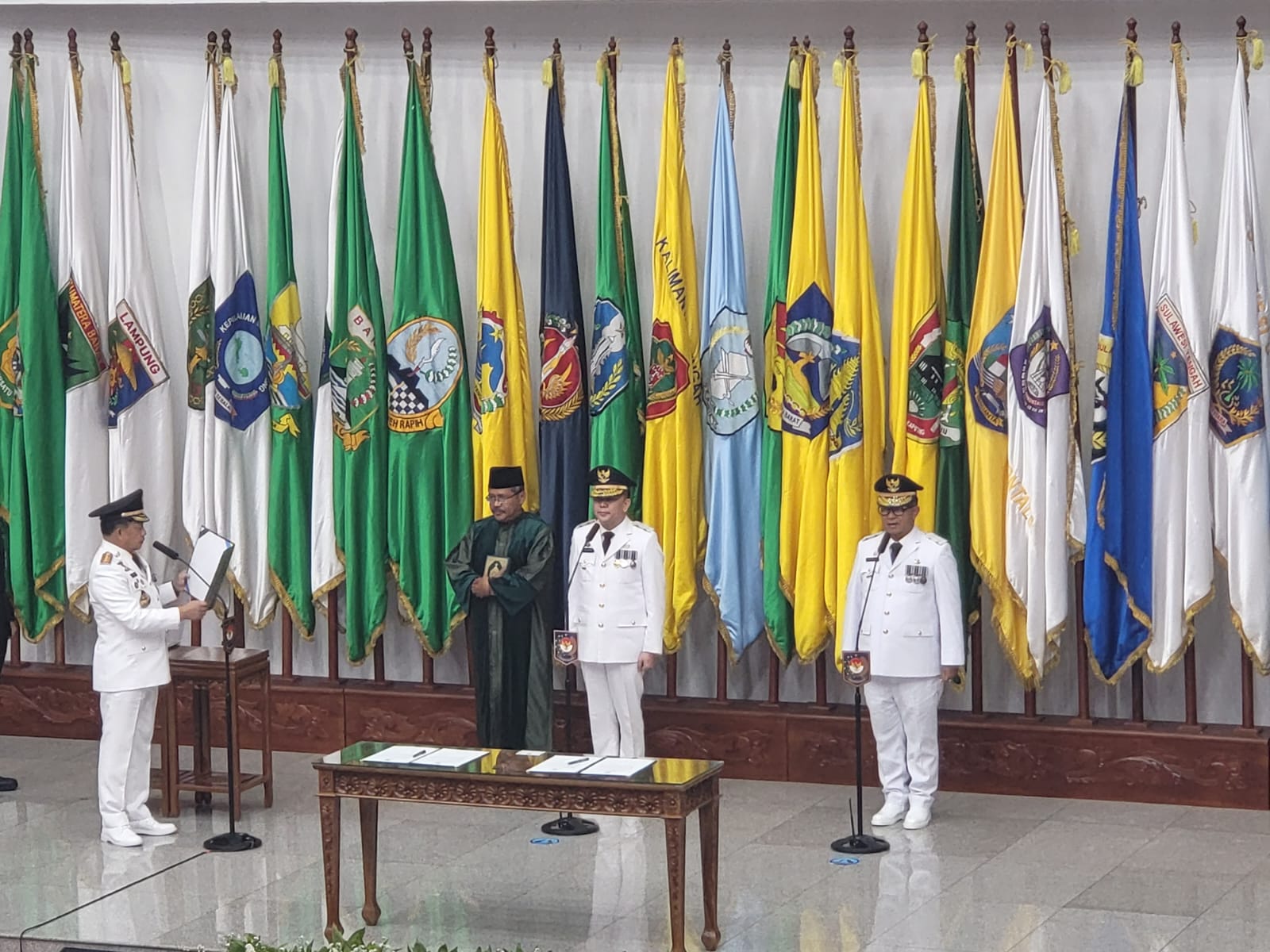 “Demi Allah saya bersumpah akan memenuhi kewajiban saya sebagai penjabat gubernur dengan sebaik-baiknya dan seadil-adilnya, memegang teguh Undang-Undang Dasar NRI 1945 dan menjalankan segala Undang-Undang dan peraturannya dengan selurus-lurusnya serta berbakti kepada masyarakat nusa dan bangsa,” ucap Tito diikuti keduanya.