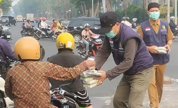 “Bagi masker bentuk upaya kita untuk pencegahan karena kita lihat ISPU sudah melampaui ambang batasnya lebih 300-an,” katanya.
