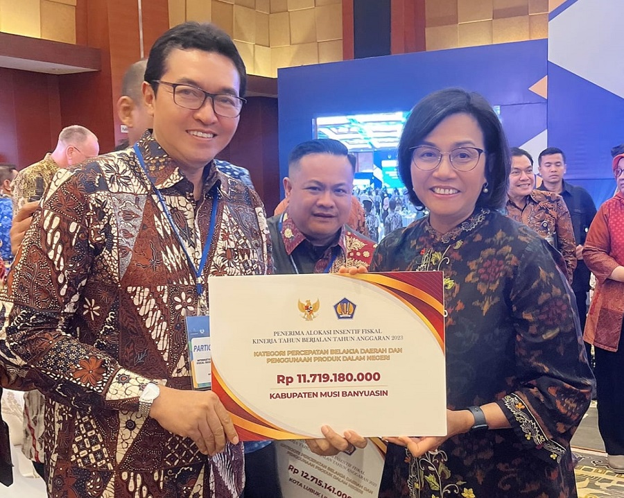 KATANDA.ID, Jakarta – Menteri Keuangan Sri Mulyani memberikan penghargaan insentif fiskal untuk Musi Banyuasin (Muba) yang dipimpin Pj Bupati Apriyadi. Muba berhasil meningkatkan kinerja di empat kategori dan mendapatkan gelontoran dana sebesar Rp 23,8 miliar.