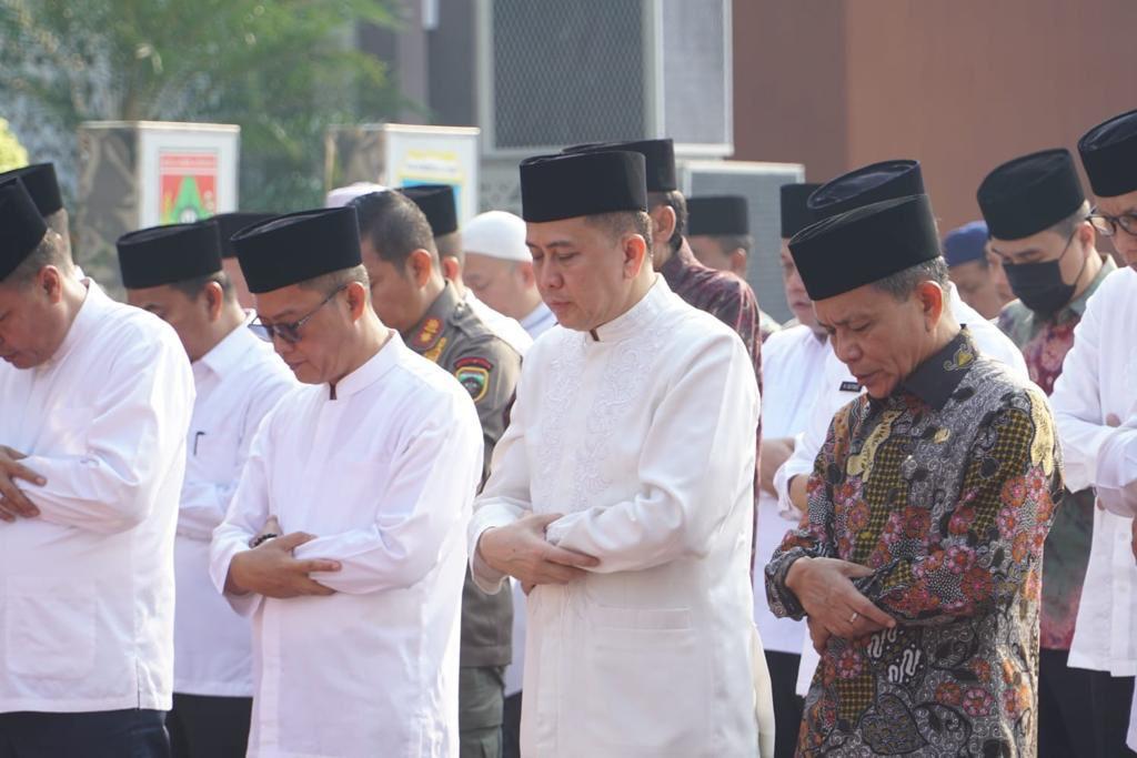 KATANDA.ID, Palembang – Penjabat (Pj) Gubernur Sumatera Selatan Agus Fatoni bersama ratusan pegawai di lingkungan Pemerintah Provinsi (Pemprov) Sumsel melaksanakan salat istisqa atau minta hujan. Kegiatan ini dimulai pada pukul 07.30 WIB di halaman Kantor Gubernur Sumsel, Jumat (13/10/2023).