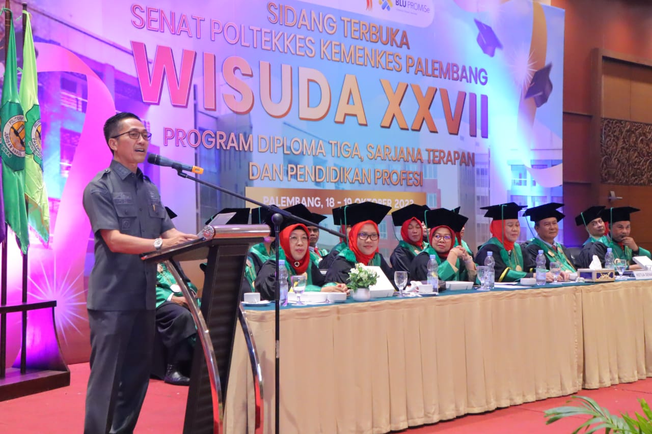 KATANDA.ID, Palembang – Pj Wali Kota Palembang Ratu Dewa menghadiri wisuda ke XXVII program Diploma tiga Sarjana Terapan dan Pendidikan Profesi Poltekkes Kemenkes Palembang, Rabu (18/10/2023) di Hotel Aryaduta Palembang.