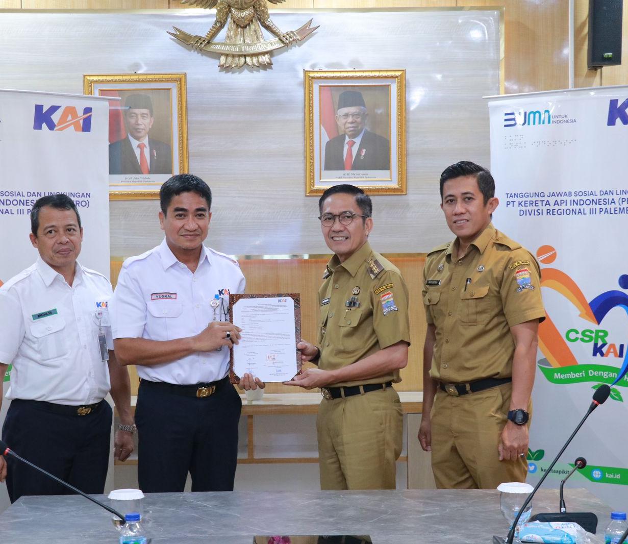 Bantuan tersebut diserahkan secara simbolis mewakili Direksi PT KAI Indonesia (Persero) Oleh Kepala Divisi Regional III Palembang Yuskal Setiawan kepada Pj. Walikota Palembang, Ratu Dewa di kantor walikota Palembang.