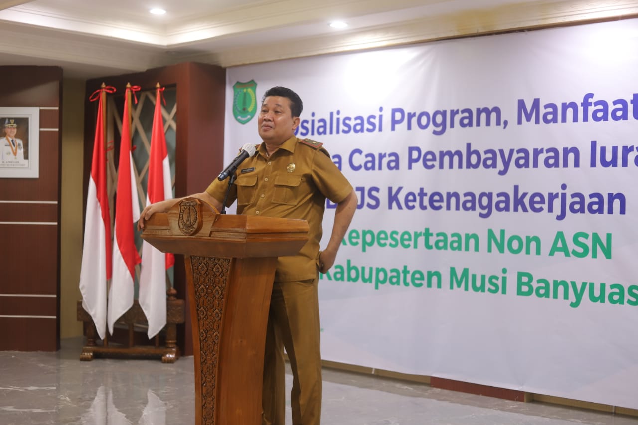 Demikian disampaikan Pj Bupati Muba H Apriyadi Mahmud melalui Asisten Administrasi Umum Drs Syafaruddin MSi saat membuka Sosialisasi Program, Manfaat dan Tata Cara Pembayaran Iuran BPJS Ketenagakerjaan Kepesertaan Non ASN di Kabupaten Muba, bertempat di Auditorium Pemkab Muba, Selasa (24/10/2023).