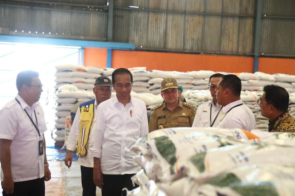 KATANDA.ID, Palembang – Presiden Republik Indonesia (RI) Joko Widodo didampingi Penjabat (Pj) Gubernur Sumatera Selatan (Sumsel) Agus Fatoni meninjau persediaan pangan, terutama beras. Peninjauan ini dilakukan di Gudang Bulog Sukamaju, Palembang, Sumatera Selatan, Kamis (26/10/2023).