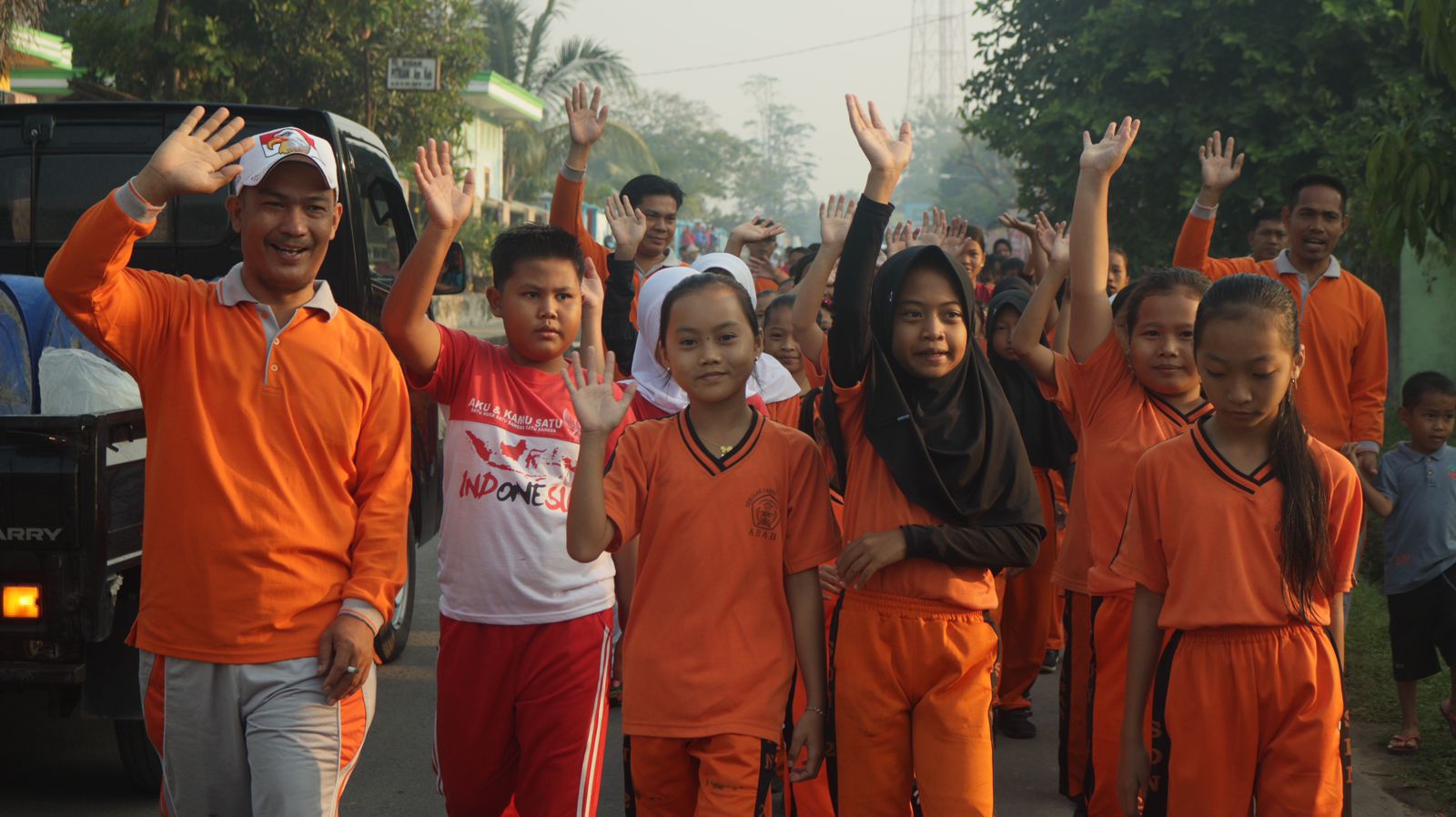 Peserta jalan santai terdiri dari pelajar tingkat TK, SD, SLTP, SLTA, TP.PKK hingga masyarakat umum.