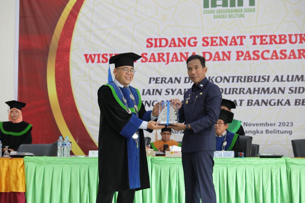 KATANDA.ID, PANGKALPINANG – Penjabat (Pj) Gubernur Kepulauan Bangka Belitung (Kep. Babel) Suganda Pandapotan Pasaribu menyampaikan orasi ilmiah pada Wisuda ke-19 Sarjana Institut Agama Islam Negeri (IAIN) Syaikh Abdurrahman Siddiq (SAS) Kep. Babel Tahun 2023 yang berlangsung di Gedung Serbaguna Asrama Haji Kep. Babel Kamis (2/11/23).