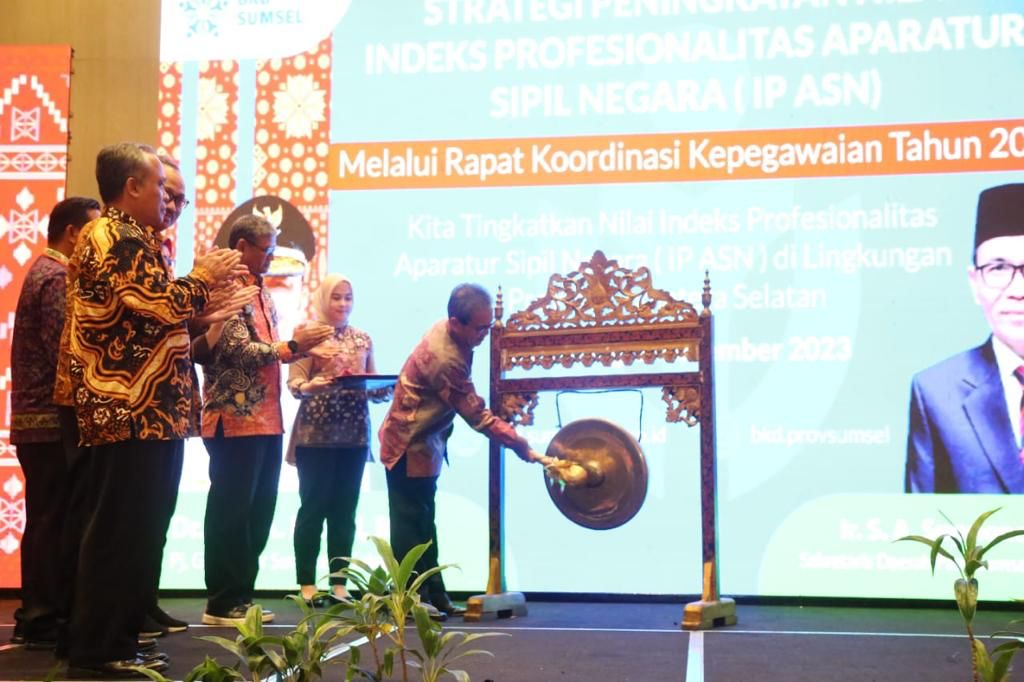 Hal itu disampaikan Sekretaris Daerah (Sekda) Provinsi Sumatera Selatan (Sumsel) SA Supriono dalam Rapat Koordinasi (Rakor) Kepegawaian Tahun 2023 bertema “Kita Tingkatkan Nilai Indeks Profesionalitas Aparatur Sipil Negara (IP ASN) di Lingkungan Provinsi Sumsel” di Ballroom Hotel Novotel, Kamis (2/11/2023).