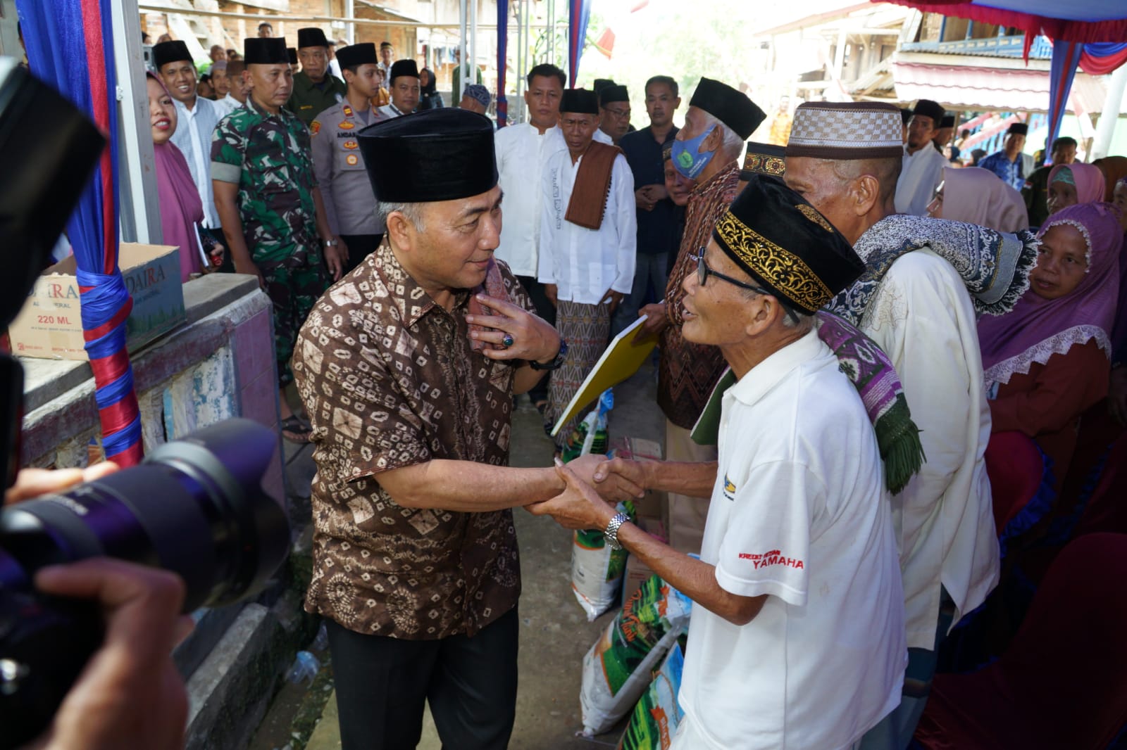 Usai melaksanakan safari Jumat dan silaturahmi dengan warga Desa Sukalali, Pj Bupati Apriyadi berjalan kaki menuju rumah salah satu tokoh masyarakat Desa Sukalali yang sedang sakit dirumahnya yaitu H Syaiful Bahri.