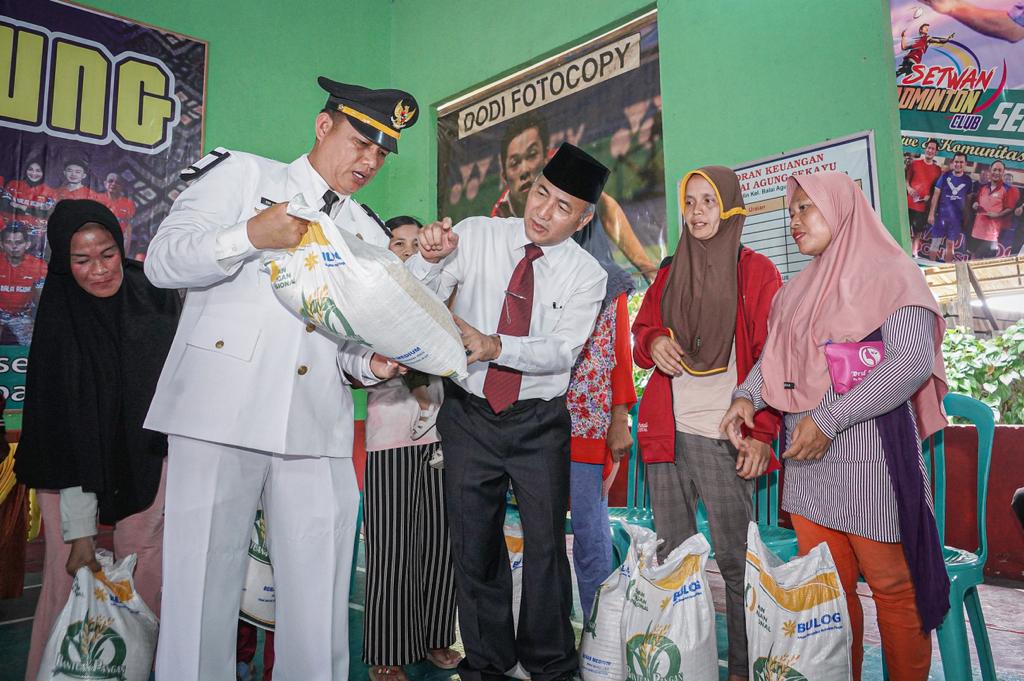 Pantauan di lokasi, tampak Pj Bupati Apriyadi Mahmud memantau langsung proses penyaluran penerima bantuan pangan di Kelurahan Balai Agung.