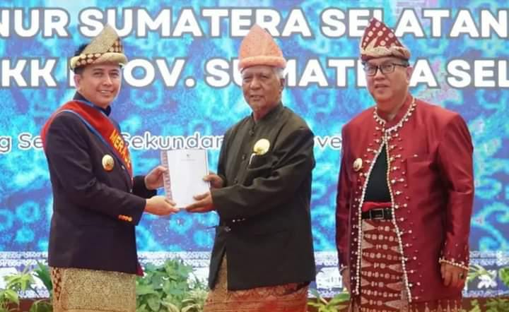 “Penganugerahan gelar adat ini merupakan bentuk rasa cinta, bangga dan bahagia dari seluruh masyarakat Kabupaten Muara Enim dalam menyambut kehadiran Pj. Gubernur Sumsel yang telah bergelar Meraje Emban Adat untuk memimpin Masyarakat Bumi Serasan Sekundang sekaligus sebagai kepala daerah di Provinsi Sumatera Selatan,” ungkapnya.