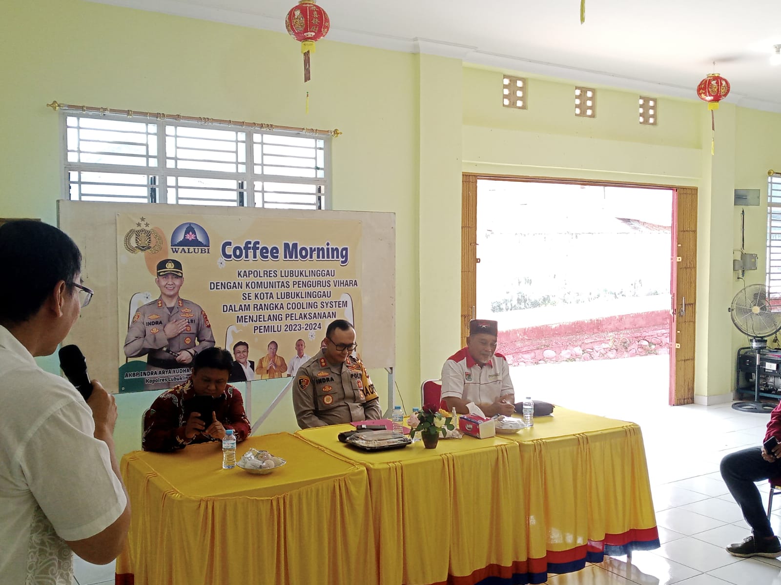 Dalam rangka cooling sistem menjelang pelaksanaan pemilu 2024 acara digelar di gedung pertemuan Vihara, Jalan Riau RT.03, Kelurahan Taba Koji, Kecamatan Lubuklinggau Timur Dua, Selasa (21/11/2023) pagi.