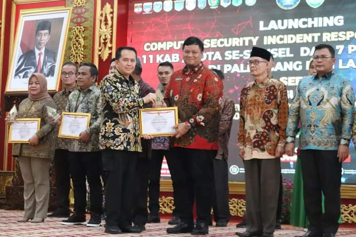 KATANDA.ID, Palembang – Dalam rangka pengamanan, memperkuat ekosistem teknologi terinformasi dan maju, Computer Security Incident Response Team (CSIRT) Pemerintah Kabupaten Banyuasin resmi dilaunching bersama 10 Kabupaten/Kota se-Sumsel dan 7 Perguruan Tinggi di Palembang dan Lampung serta Pengukuhan Dewan Teknologi Informasi dan Komunikasi Daerah (WANTIKDA) Provinsi Sumatera Selatan periode 2023-2026 oleh Penjabat (Pj) Gubernur Sumatera Selatan, Dr. Drs. A. Fatoni, M.Si di Griya Agung, Palembang, Jum’at (24/11).
