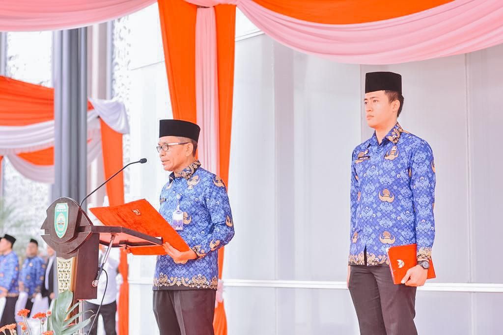 Upacara HUT Korpri di lingkungan Pemprov Sumsel kali ini diikuti para Asisten, Kepala Organisasi Perangkat Daerah (OPD), Kabiro dan pegawai di lingkup Pemprov Sumsel. (ril)