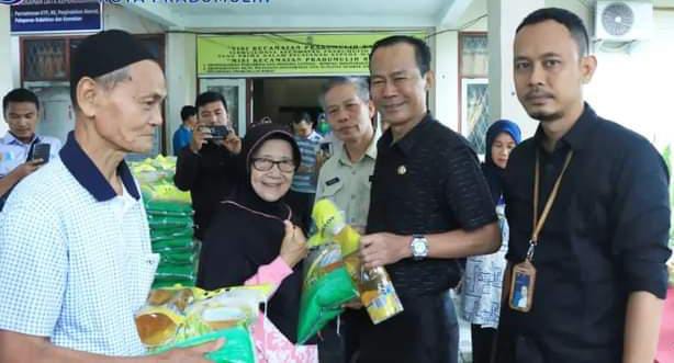 Turut hadir Camat Prabumulih Barat Edi Suanto, SE MSi dan Camat Prabumulih Timur Joni Panhar, SH MM beserta lurah dan warga penerima sembako murah. (ril)