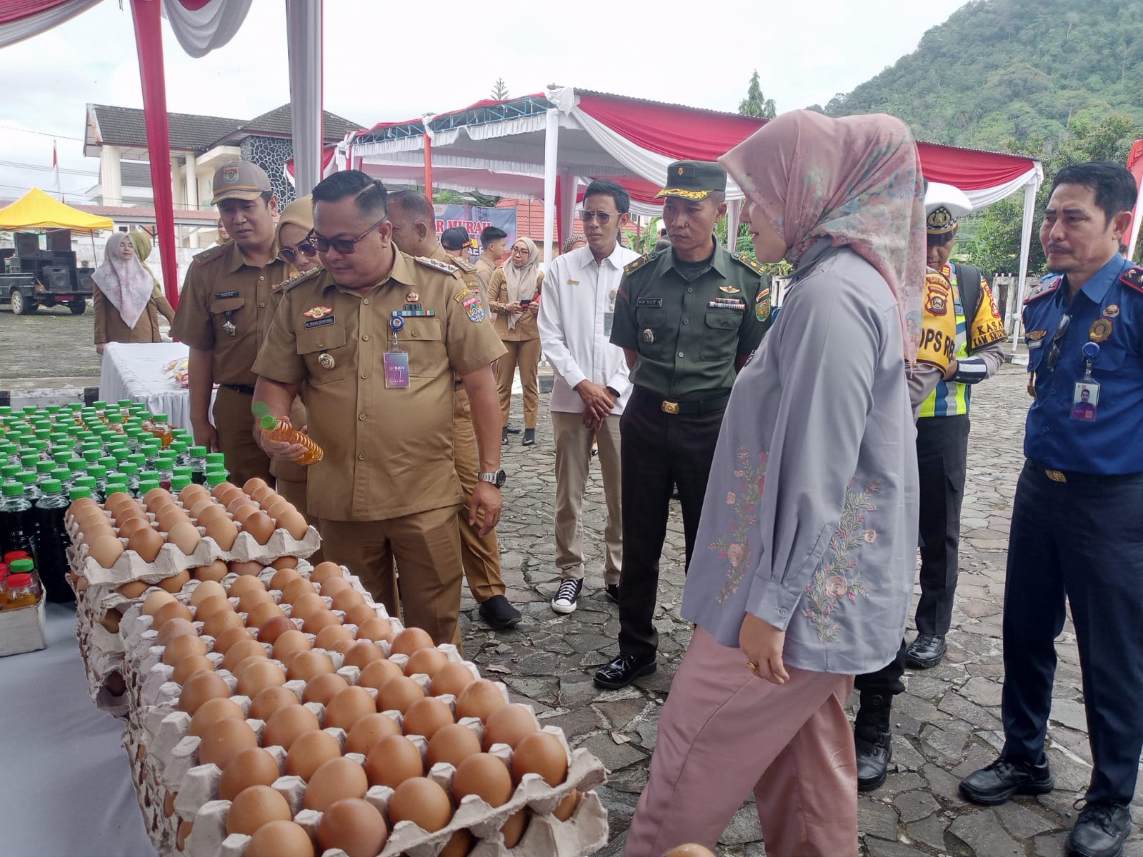 Pj Wali Kota Lubuklinggau Trisko Defriyansa didampingi Ibu Pj Ketua TP PKK Henita andriani Trisko bersama Kapolres, Kasdim dan Opd Lubuklinggau menyampaikan pada kesempatan ini kegiatan operasi pasar murah tahap kedua Pemerintah Kota Lubuklinggau dalam hal ini Kabag Ekonomi bekerjasama dengan Bank BI Sumsel.
