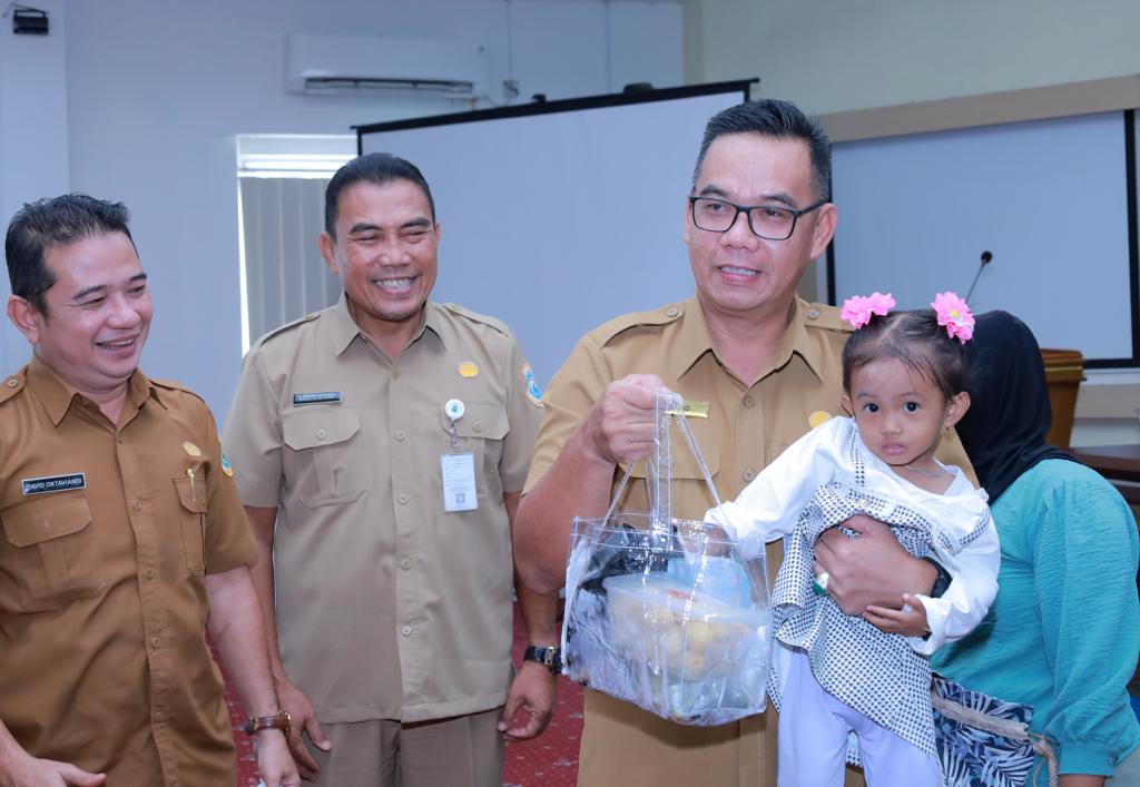 KATANDA.ID, Pangkalpinang – Dalam rangka fokus stunting, Pemerintah Kota Pangkalpinang bagikan bantuan makanan untuk Anak Stunting Tahun 2023 di Ruang OR Kantor Wali Kota Pangkalpinang, Selasa (5/12/2023).