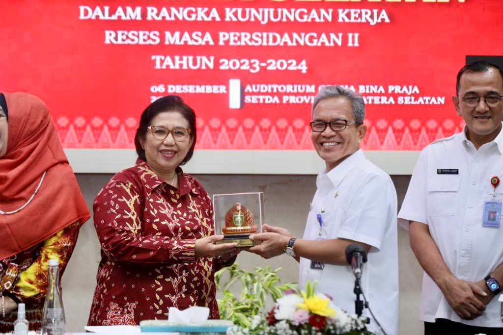 KATANDA.ID, Palembang – Sekretaris Daerah (Sekda) Provinsi Sumatera Selatan (Sumsel) Ir. S.A Supriono menerima kunjungan kerja Komisi IX Dewan Perwakilan Rakyat (DPR) Republik Indonesia (RI) dalam rangka reses masa persidangan II tahun 2023-2024 yang diterima Auditorium Bina Praja Pemprov Sumsel, Rabu (6/12/2023).