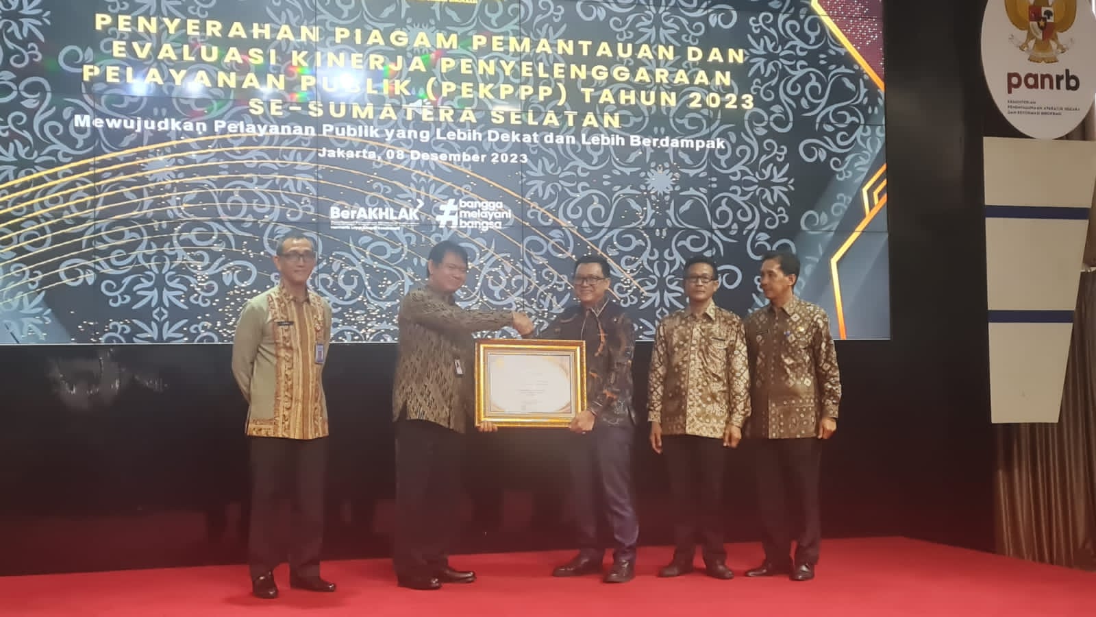 Penyerahan Piagam Penghargaan Hasil Pemantauan Evaluasi Kinerja Penyelenggara Pelayanan Publik (PEKPPP) Tahun 2023 ini diputuskan setelah dikeluarkannya hasil Pemantauan Evaluasi Kinerja Penyelenggara Pelayanan Publik (PEKPPP) Tahun 2023 oleh Kementerian PANRB Nomor 795 Tahun 2023 tanggal 24 November 2023 tentang Hasil Pemantauan Evaluasi Kinerja Penyelenggara Pelayanan Publik di Kementerian, Lembaga, Pemerintah Daerah dan BUMN Tahun 2023.