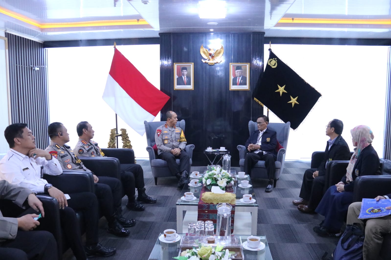 Kapolda menerima audiensi Ketua Bidang Organisasi, Anwar Rasuan, Sekretaris, Dwitri Kartini, Icuk M Sakir, Ketua Bidang Organisasi, Bendahara, Novas Riyadi, Ketua Panitia, Kawar Dante, Sekretaris Panitia, Rofei Husein.