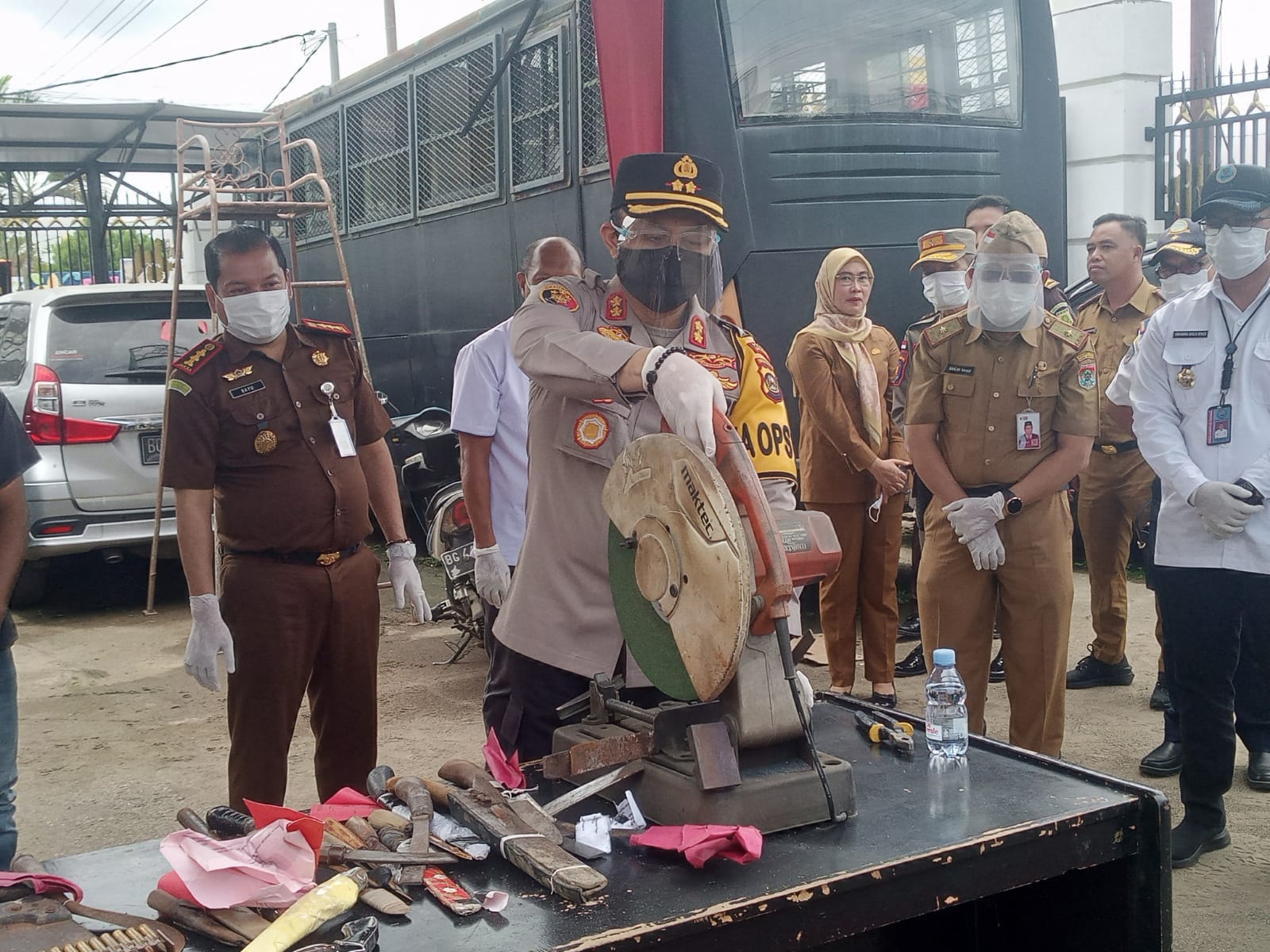 Kajari Lubuklinggau, Riyadi Bayu Kristianto didampingi Kasi BB, Imam Hidayat mengatakan hari ini kegiatan pemusanahan barang bukti yang mempunyai kekuatan hukum tetap, yang mana pemusnahan tersebut terdiri dari satu pucuk senjata api laras pendek, kemudian 51 butir peluru dan 23 parang atau pisau.