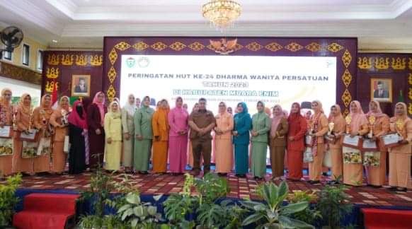 KATANDA.ID, Muarenim – Sekretaris Daerah (Sekda) Muaraenim, H Yulius mengapresiasi kinerja Dharma Wanita Persatuan (DWP) Kabupaten Muara Enim. Apresiasi ini disampaikan saat acara Peringatan Hari Ulang Tahun (HUT) ke-24 pada Senin (11/12) di Balai Agung Serasan Sekundang (BASS) Muara Enim.