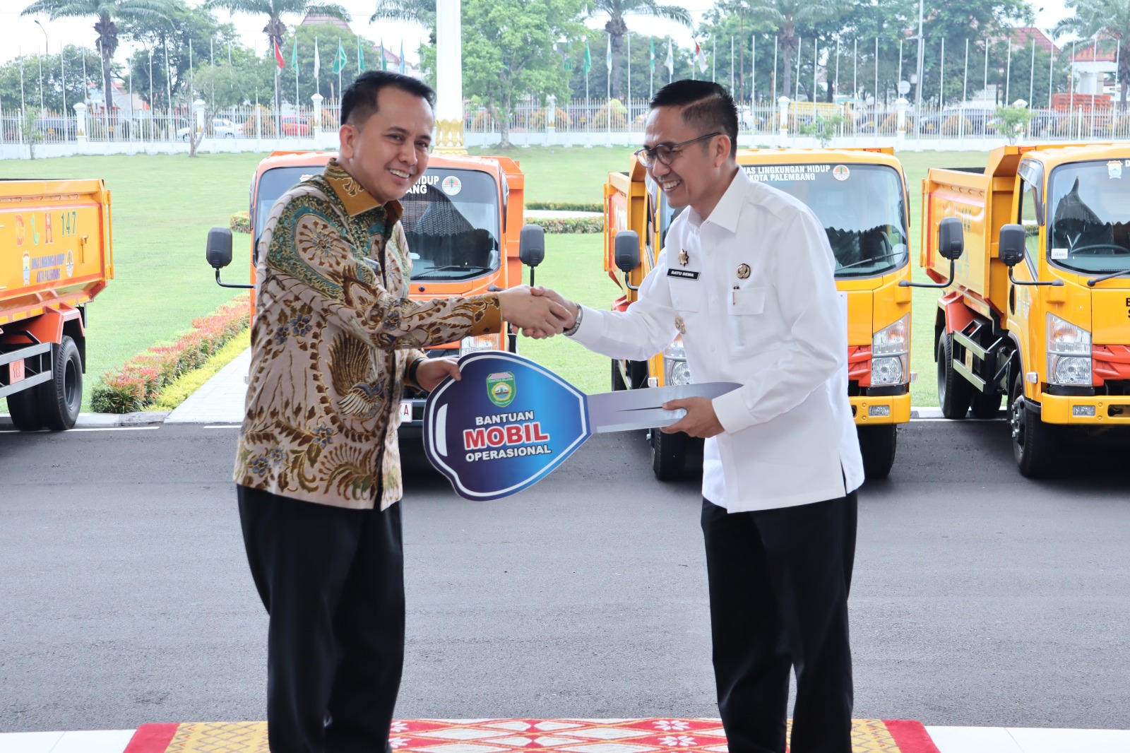 Belasan mobil kebersihan itu terdiri dari 10 unit jenis dump truck dan 5 truck jenis arm roll. Nantinya mobil- mobil ini akan mengangkut sampah di wilayah Kota Palembang.