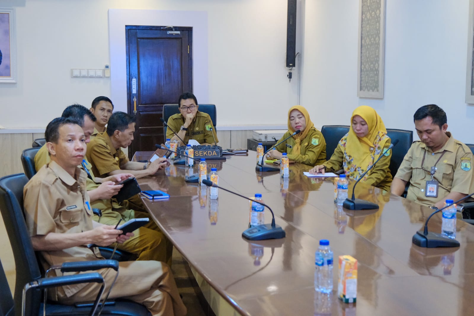 KATANDA.ID, Muba – Plh Sekretaris Daerah Kabupaten Musi Banyuasin Andi Wijaya Busro SH MH bersama OPD dalam lingkungan Pemkab Muba terkait mengikuti kegiatan sosialisasi penyampaian pedoman umum LPPD, LKPJ, RLPPD, Kinerja Pelaksanaan Kewenangan Otsus / Keistimewaan dan Pelaksanaan Otonomi Daerah Tahun Anggaran 2023 Melalui SILPPD, Selasa (19/12/2023) di ruang rapat Sekda.