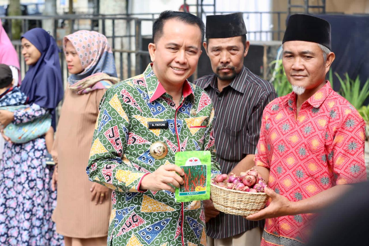 KATANDA.ID, Pagar Alam – Penjabat (Pj) Gubenur Sumatera Selatan (Sumsel) Agus Fatoni dan Pj Ketua Tim Penggerak (TP) Pemberdayaan Kesejahteraan Keluarga (PKK) Tyas Fatoni membagikan bantuan bibit cabe dan bawang kepada sejumlah kelompok tani. Bantuan ini diberikan usai Launching Program Pencegahan Stunting di Kota Pagar Alam, Sumatera Selatan, Sabtu (16/12/2023).