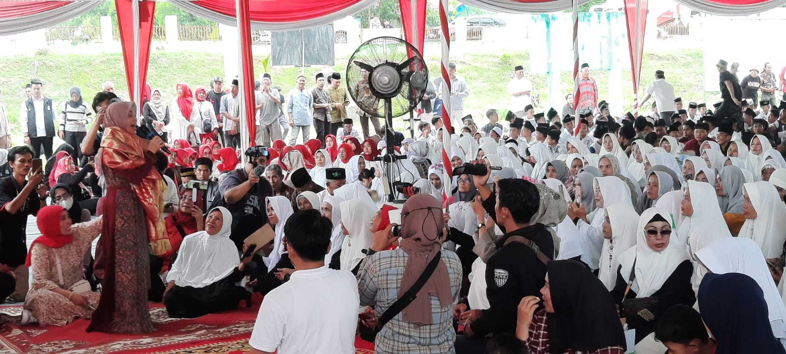 KATANDA.ID, Palembang – Siti Atikoh Ganjar Pranowo disambut ribuan santri dan masyarakat. Kehadirannya menyapa ratusan santri pondok pesantren Sultan Mahmud Badaruddin Palembang, Kelurahan Talang Jambe, Kecamatan Sukarami Palembang dengan sholawat.