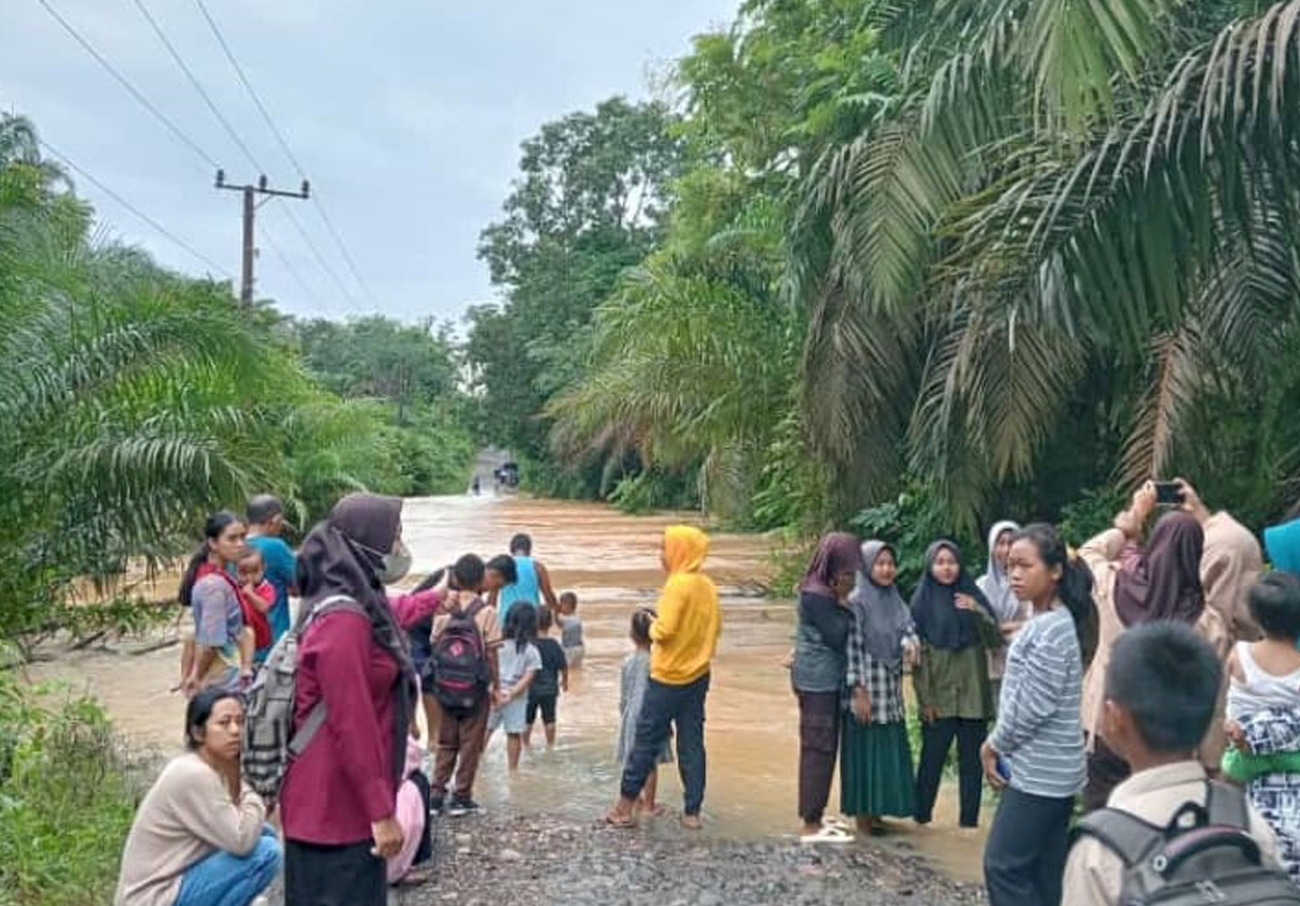 Seperti terjadi, Sabtu (13/1/2024) pagi, warga dan anak- anak sekolah terpaksa putar balik pulang ke desa lantaran akses jalan tertutup air.