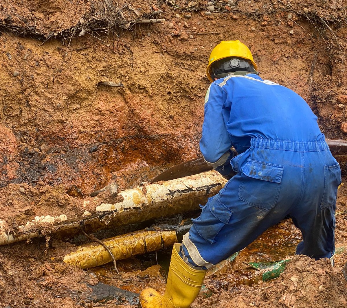 KATANDA.ID, PALI – Pertamina EP (PEP) Adera Field sigap tangani kebocoran pipa penyalur minyak yang menghubungan Stasiun Pengumpul (SP) Benuang dan Pusat Pengumpul Produksi (PPP) Pengabuan di Desa Benuang, Kecamatan Talang Ubi, Kabupaten PALI (Penukal Abab Lematang Ilir), Sumatra Selatan, pada Sabtu (13/1/2024).
