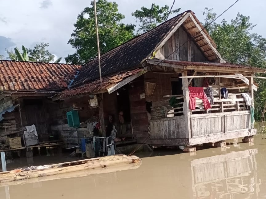Sejumlah rumah warga di desa tersebut yang terbuat panggung dengan ketinggian antara 1,5 meter hingga 2 meter sudah terendam.