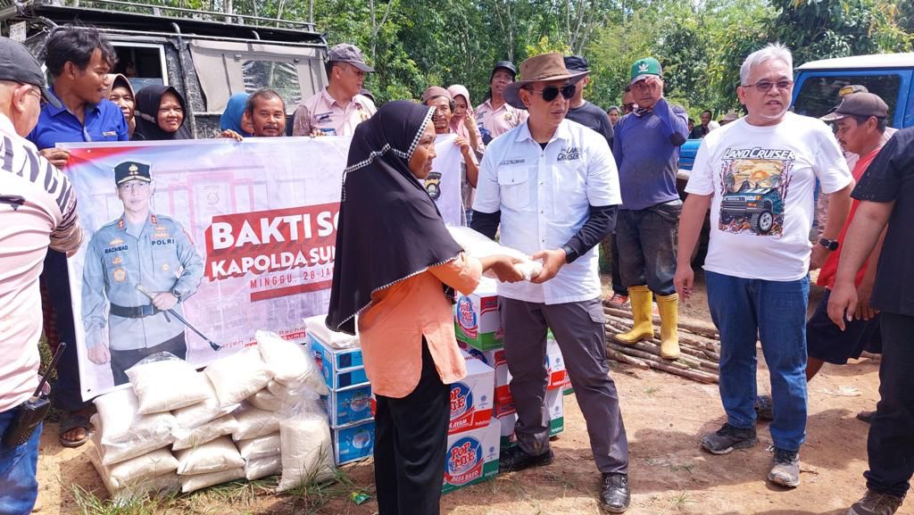 “Polda Sumsel sengaja menggandeng Komunitas Jeep 4×4 untuk memudahkan transportasi menuju lokasi. Kami berharap bantuan 100 paket sembako ini bermanfaat dan bisa meringankan beban bagi masyarakat,” ujar Rachmad.