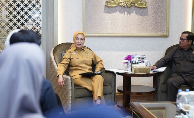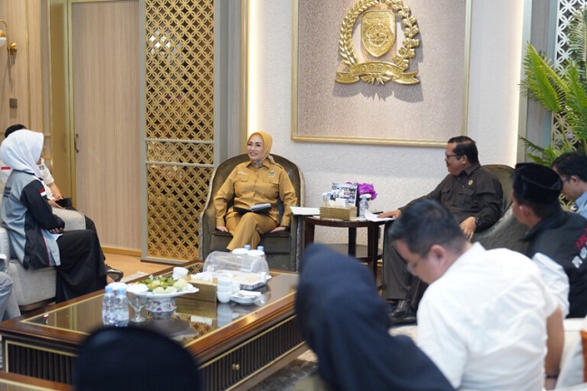 KATANDA.ID, PALEMBANG – Ketua DPRD Provinsi Sumatera Selatan (Sumsel) Dr. Hj. R.A. Anita Noeringhati, SH, MH, menerima audiensi Forum Guru Honor Negeri Status P (FGHNSP) SMA/SMK/SLB Provinsi Sumatera Selatan di Ruang Pimpinan DPRD Provinsi Sumsel, Senin, (12/2/2024). Audiensi FGHNSP SMA/SMK/SLB Provinsi Sumsel tersebut bertujuan untuk menyampaikan permohonan agar para guru honor yang berstatus P atau yang sudah memenuhi nilai ambang batas tahun 2023 dapat diperjelas kedudukannya.