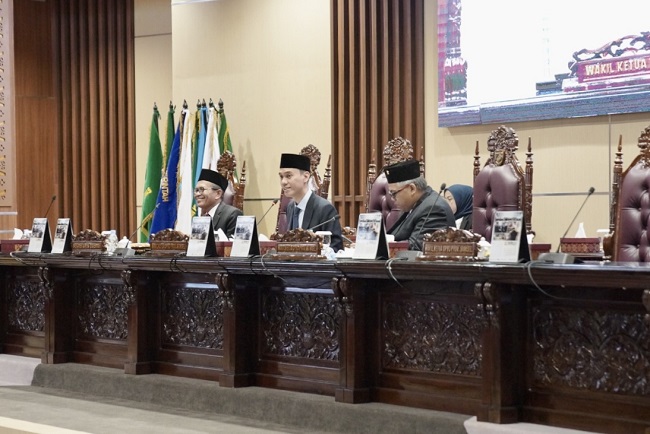 Rapat Paripurna dipimpin oleh Wakil Ketua DPRD Prov, Sumsel H. Muchendi Mahzareki, SE didampingi oleh Wakil Ketua DPRD Prov.Sumsel H.M. Giri Ramanda N Kiemas, SE, MM dihadiri oleh Sekretaris Daerah Prov. Sumsel Ir. SA. Supriono dan perwakilan OPD serta tamu undangan lain.