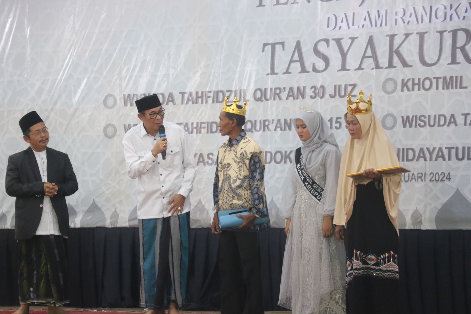 Setelah mendengarkan lantunan ayat-ayat suci Al-Quran, Bupati Heri Amalindo pun spontan memberikan hadiah kepada salah satu santri yang telah mengahafal 30 Juz bernama Nonik Krispuwati.