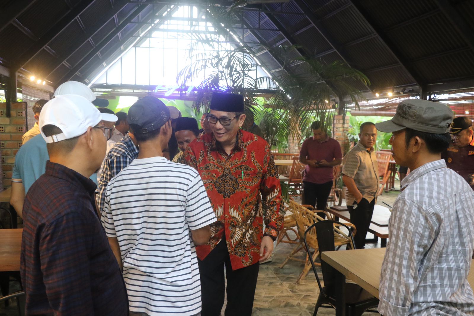 Kehangatan pun terlihat saat Bupati Heri Amalindo berjumpa, kedatangannya disambut meriah sejumlah tokoh Muara Enim.