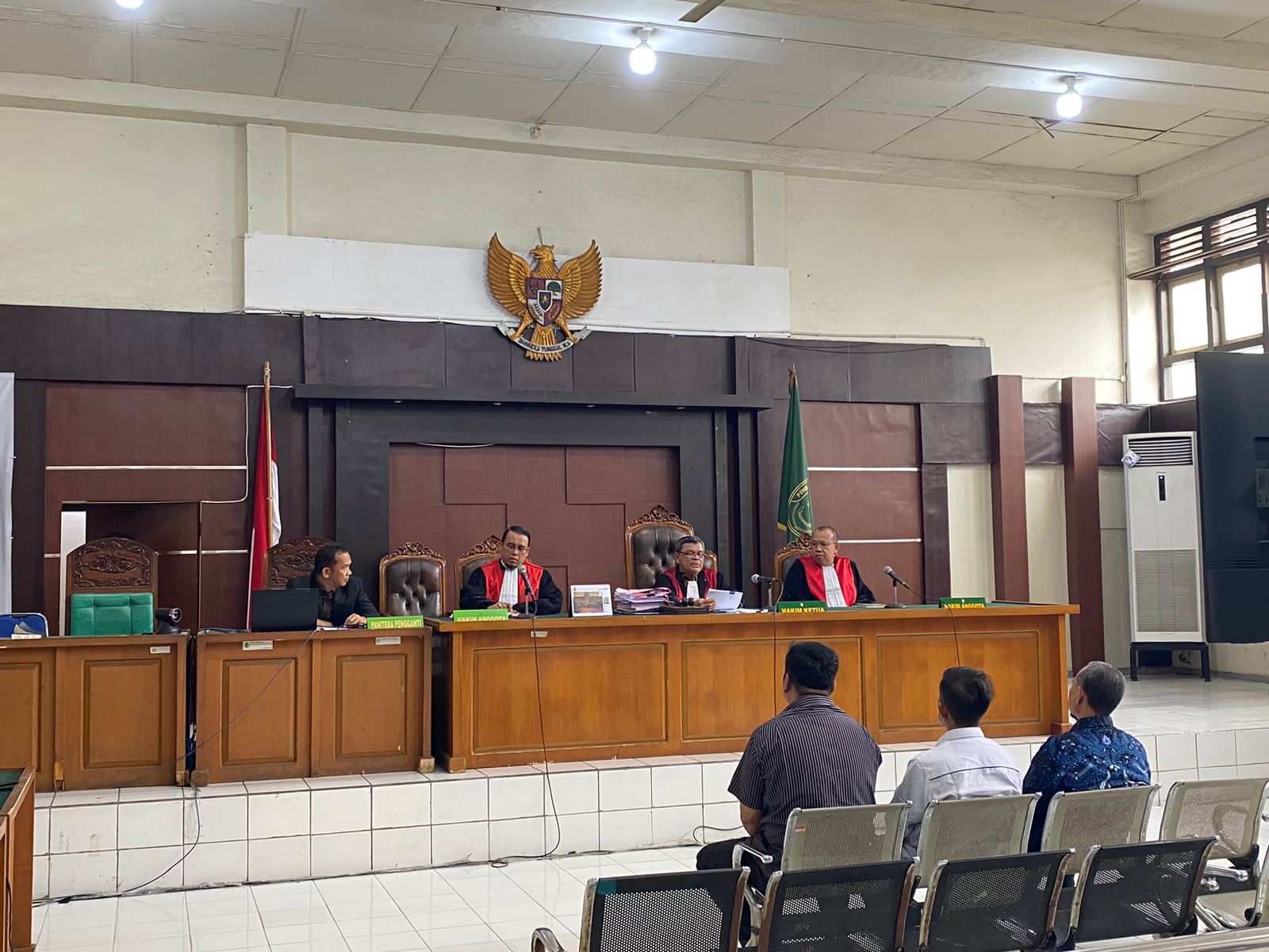 Dipimpin ketua Majelis Hakim Editerial SH,MH anggota Ardian Angga,SH,MH dan Maslam makhsid,SH MH. untuk Panitera pengganti Agus Susanto,Abu Bakri, Eka Pirdanita, penyidik Arjansyah akbar,SH,MH,Jauhari SH MH serta ketiga terdakwa didampingi oleh kuasa hukumnya masing2.