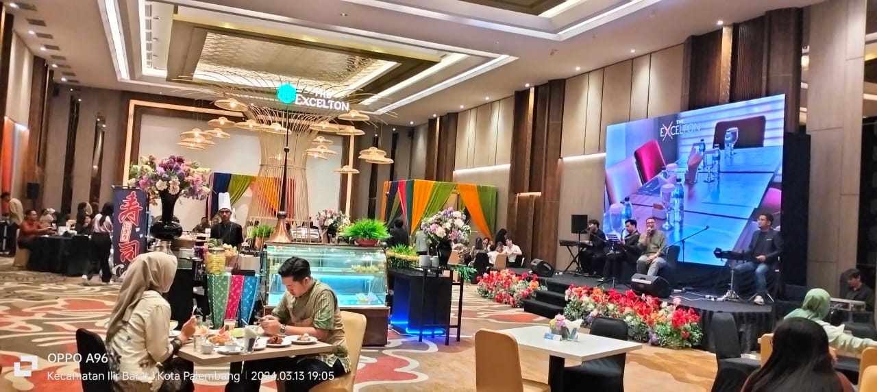 Rima Dewi.A –Director Of Sales & Marketing The Excelton Hotel Palembang mengatakan, suasana Ramadhan dapat langsung dirasakan pada saat memasuki Lobby The Excelton Hotel Palembang,dengan dékorasi bernuansa Timur Tengah serta tidak lupa dengan menghadirkan menu special menyambut Ramadhan seperti Pojok Nusantara (nasi bakar cakalang, nasi gurih bungkus daun dengan pelengkap cumi asin cabe ijo,tempe mendoan dll), Pondok Jajanan Nusantara (bakso malang,batagor & siomay ), Pojok Sate (sate ayam, sate sapi, sate udang,sate lilit,sate pentul dll), Pondok Ayam Bakar (ayam taliwang, ayam tuturaga, ayam kalasan dll ), Thai Suki, Arabian Stall (chicken shawarma lamb ouzi rize, martabak kari).
