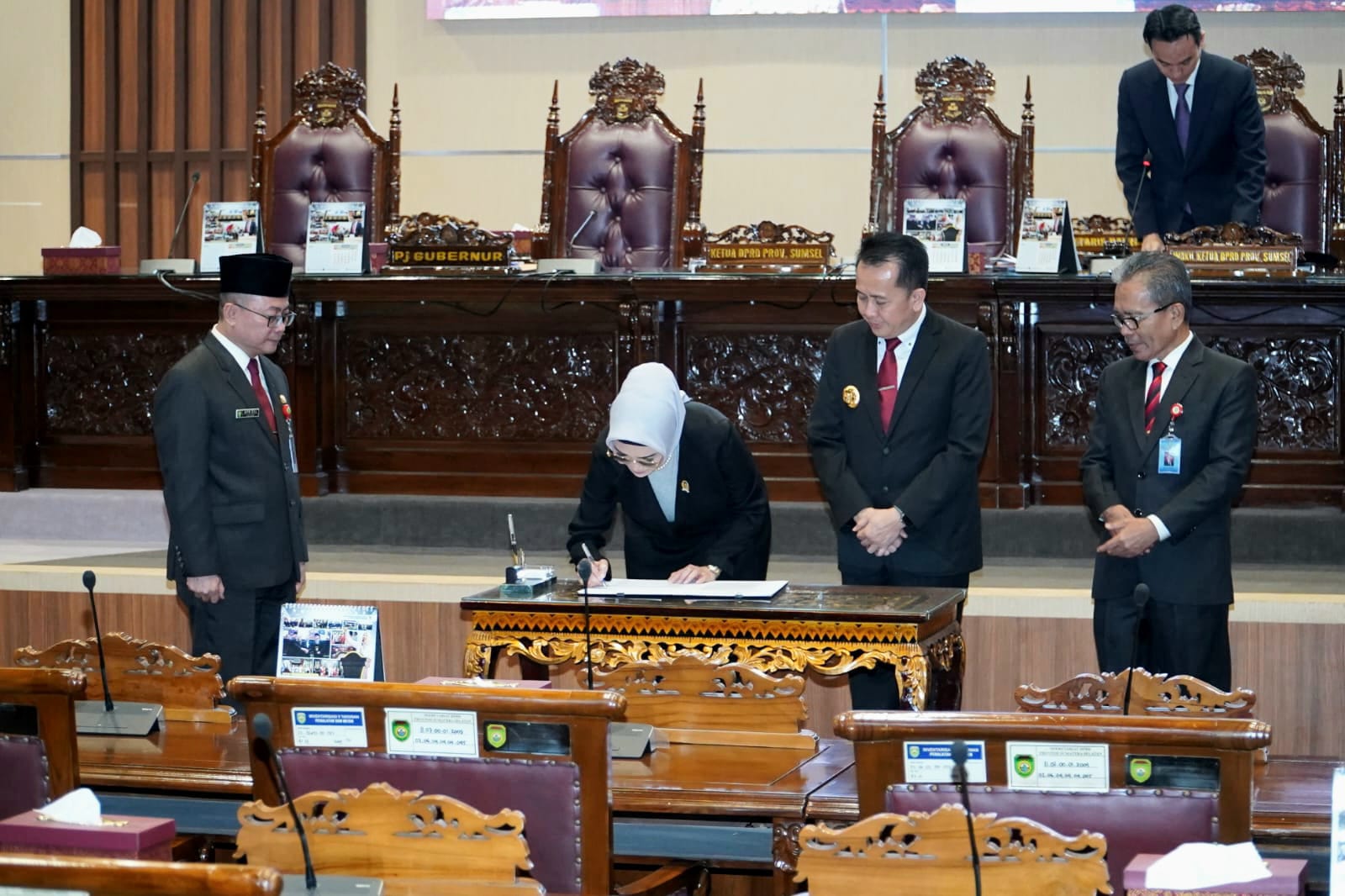KATANDA.ID, Palembang. Penjabat (Pj) Gubernur Sumatera Selatan (Sumsel) Agus Fatoni juga mengikuti Rapat Paripurna LXXXII (82) Dewan Perwakilan Rakyat Daerah (DPRD) Provinsi Sumsel dengan Agenda Perubahan dan Penambahan Program Pembentukan Peraturan Daerah Tahun 2024. Kegiatan ini berlangsung di Ruang Rapat Paripurna DPRD Provinsi Sumsel, Palembang, Sumatera Selatan, Senin (25/3/2024).