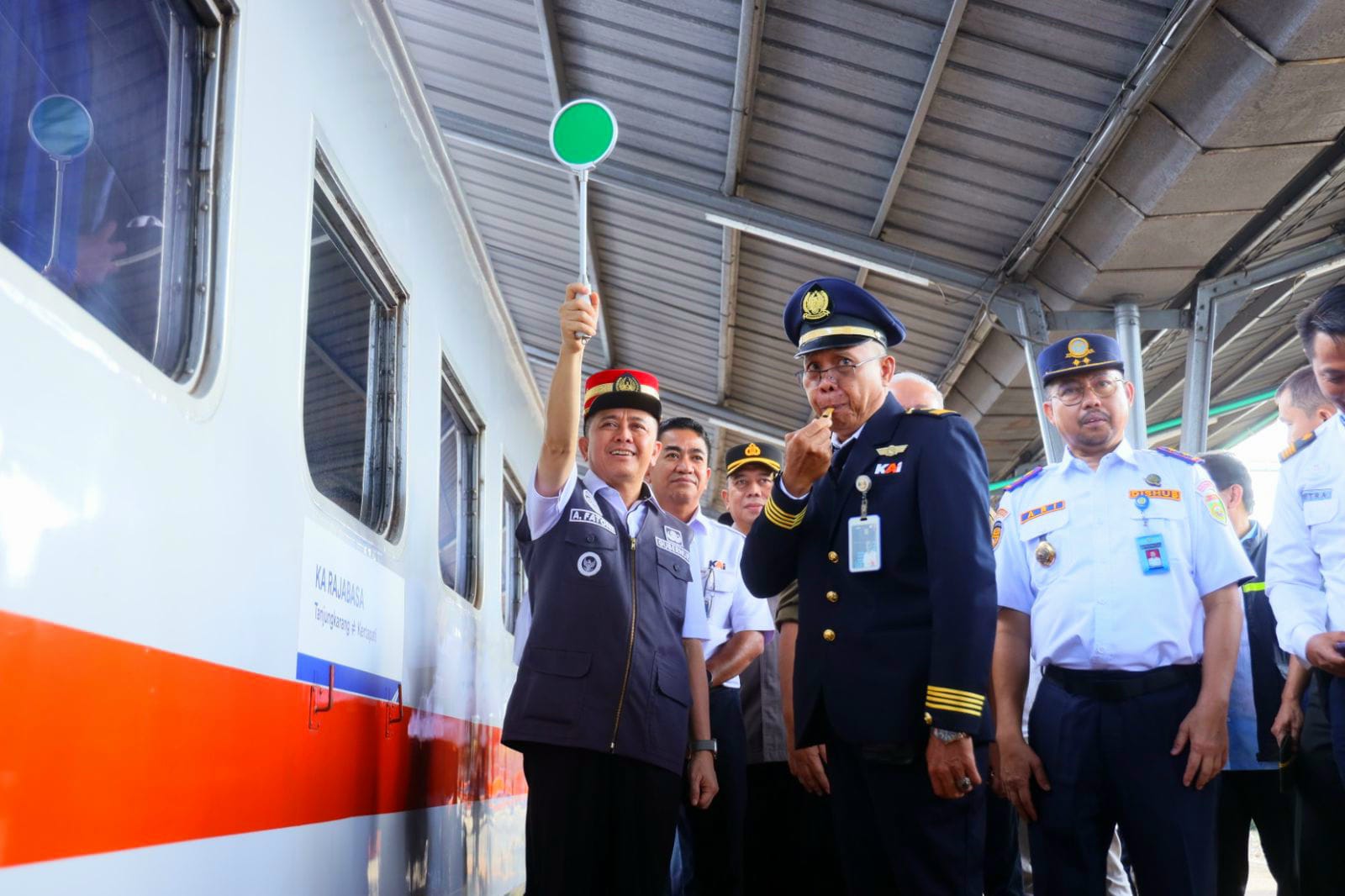 KATANDA.ID, Palembang – Penjabat (Pj) Gubernur Sumatera Selatan (Sumsel) Agus Fatoni melepas 1.040 pemudik yang mengikuti program Gerakan Mudik Gratis Serentak se-Sumsel (GMGSS) menggunakan moda transportasi Kereta Api (KA). Kegiatan ini berlangsung di Stasiun Kertapati, Palembang, Sumatera Selatan, Sabtu (6/4/2024).