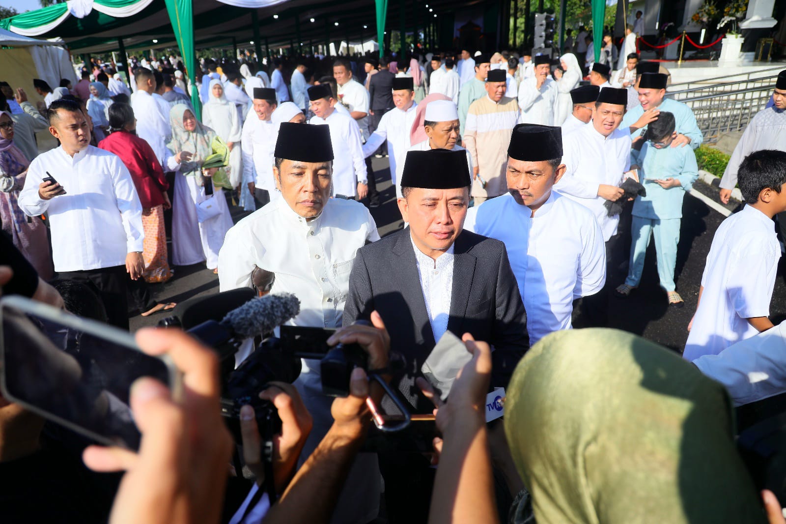 KATANDA.ID, Palembang – Penjabat (Pj) Gubernur Sumatera Selatan (Sumsel) Agus Fatoni beserta keluarga melaksanakan salat ied berjamaah bersama masyarakat Sumsel. Kegiatan ini dilaksanakan di Halaman Griya Agung, Palembang, Sumatera Selatan, Rabu (10/4/2024).
