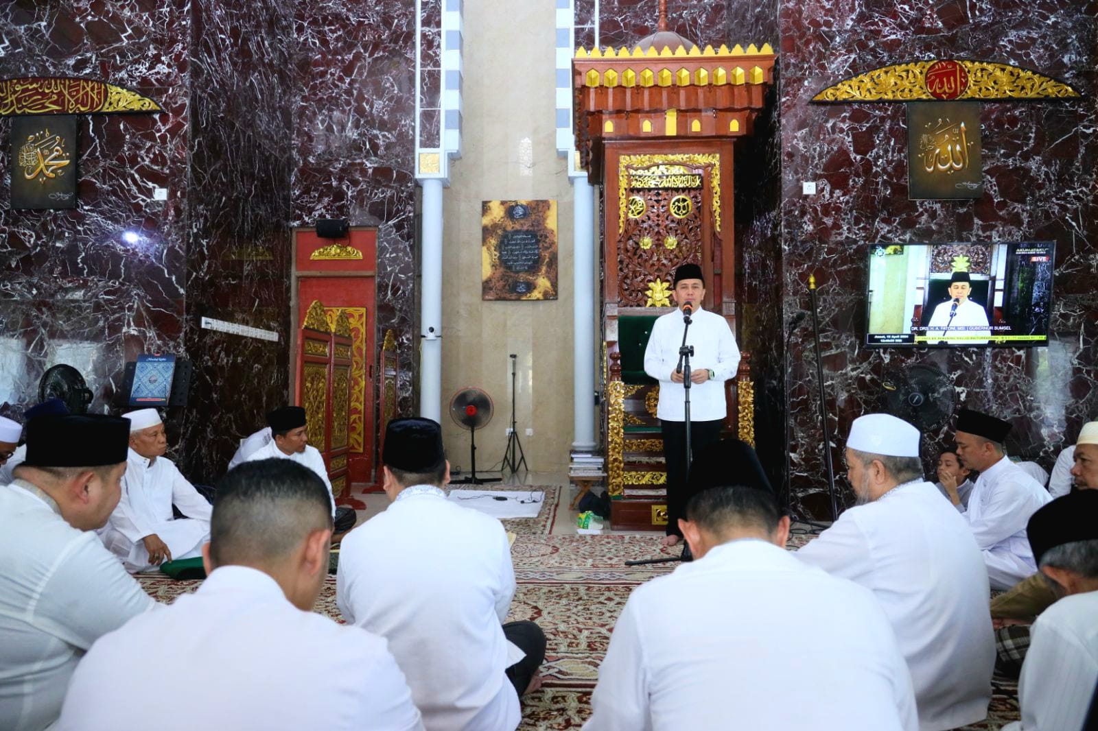“Saya bersyukur kita bisa salat jumat berjamaah disini dan bersilaturahmi. Selama enam bulan saya di Sumsel sudah berkunjung ke beberapa masjid dan hari ini di masjid yang indah ini,” kata Fatoni.