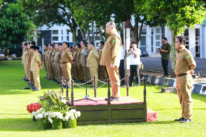 KATANDA.ID, Muba – Pemerintah Kabupaten Musi Banyuasin (Muba) menggelar apel gabungan sekaligus silaturahmi Penjabat (Pj) Bupati H Sandi Fahlepi bersama seluruh Jajaran ASN, Honorer dan Tenaga Kontrak di Lingkungan Pemkab Muba, bertempat di Halaman Kantor Bupati Musi Banyuasin, Senin (28/4/2024).