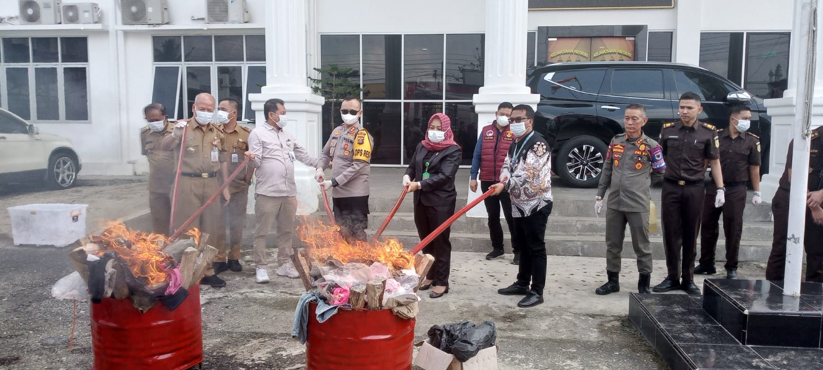 Hadir dalam pemusnahan barang bukti mewakili Pj Wali Kota Lubuklinggau Asisten III Herdawan, Kepala Kejaksaan Negeri Lubuklinggau Dr. Bayu Kristianto,SH,MH, Kapolres Lubuklinggau AKBP Indra Arya Yudha, perwakil BNNK Lubuklinggau, Perwakilan PN Lubuklinggau Lina Safitri Tazili,SH,MH dan para undangan yang hadir.